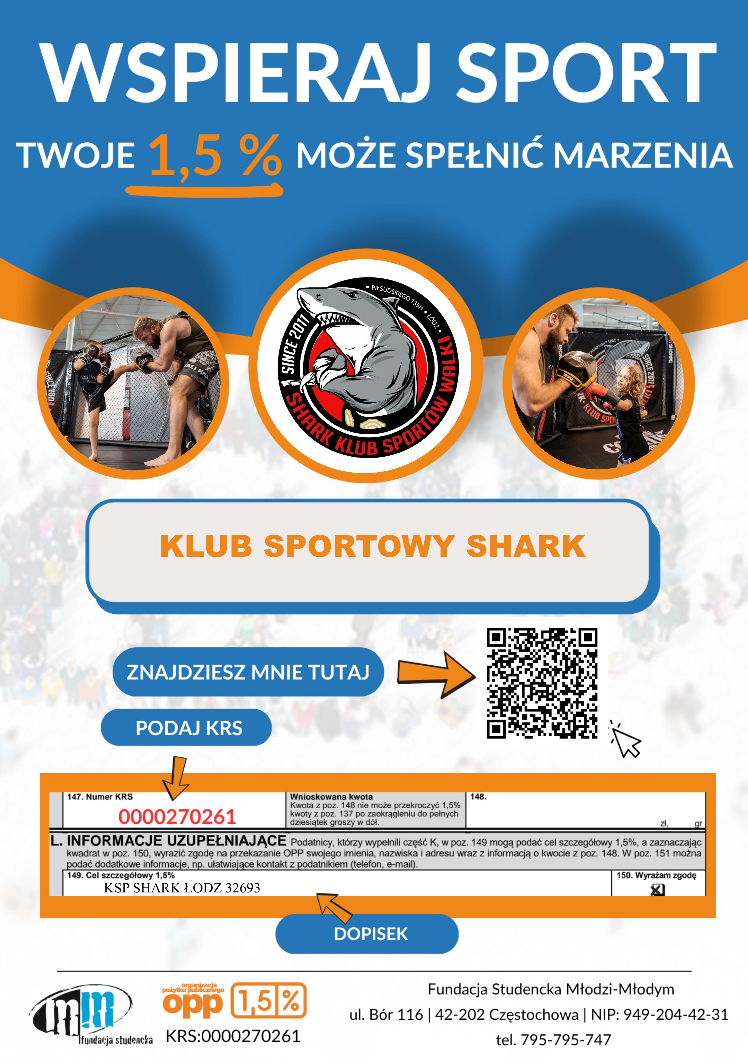 Przekaż 1,5% podatku i wesprzyj Klub Sportowy SHARK!